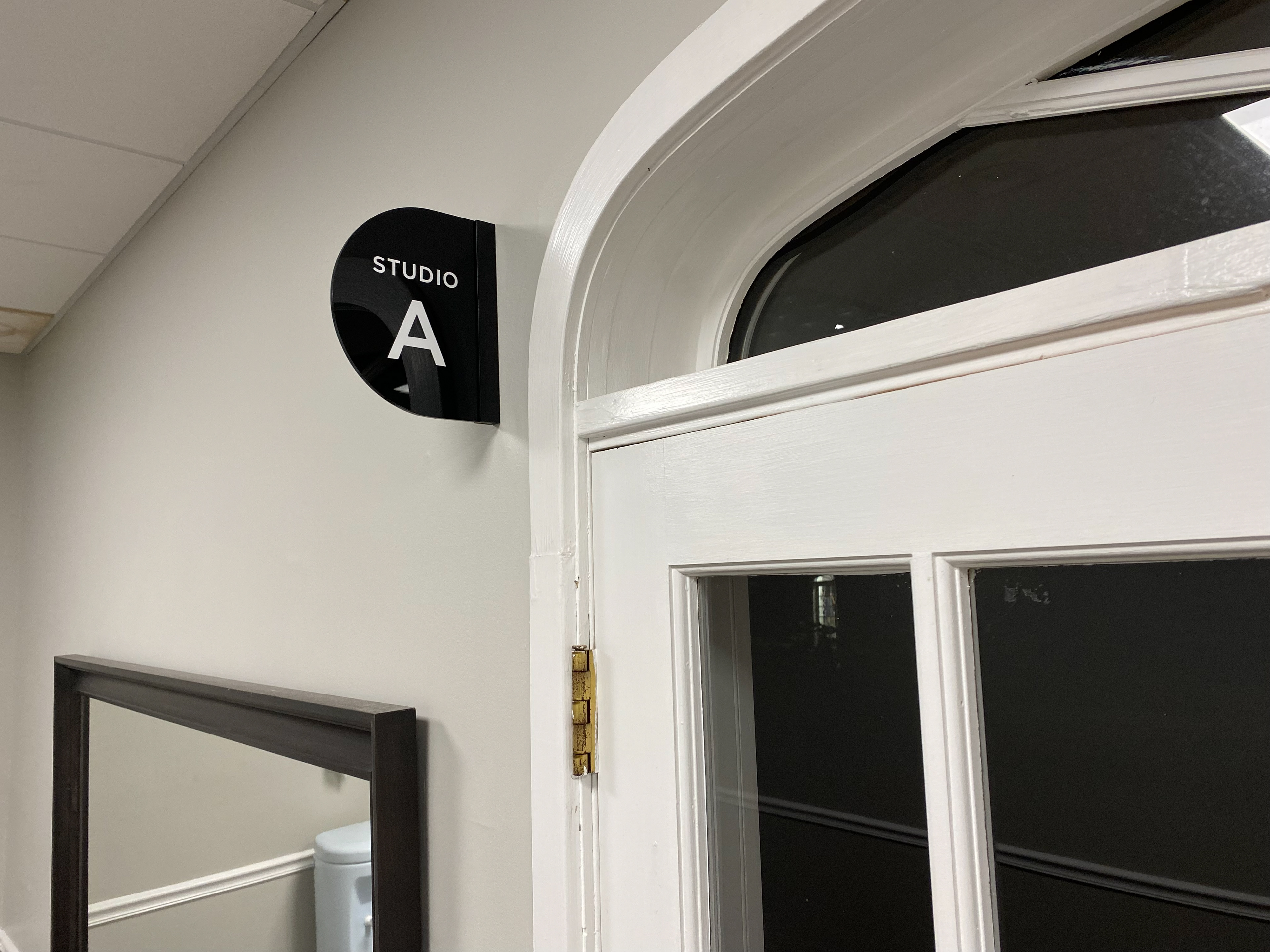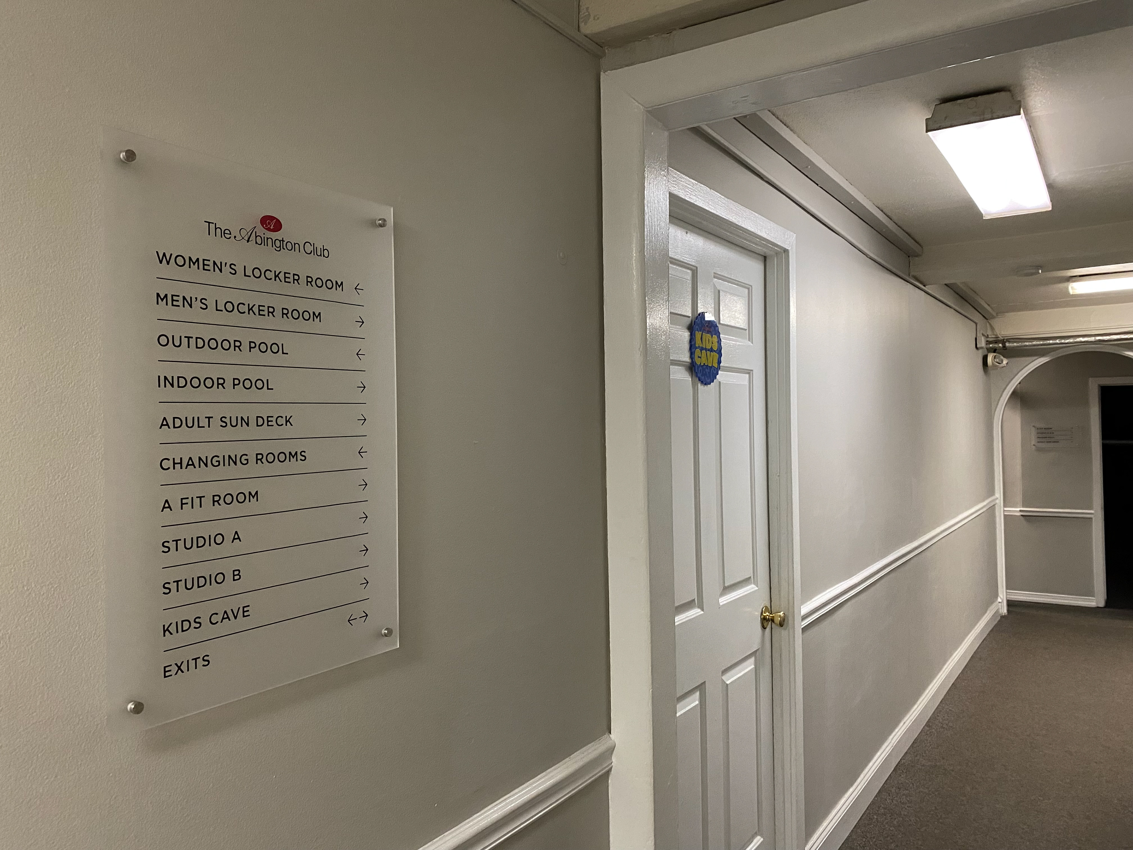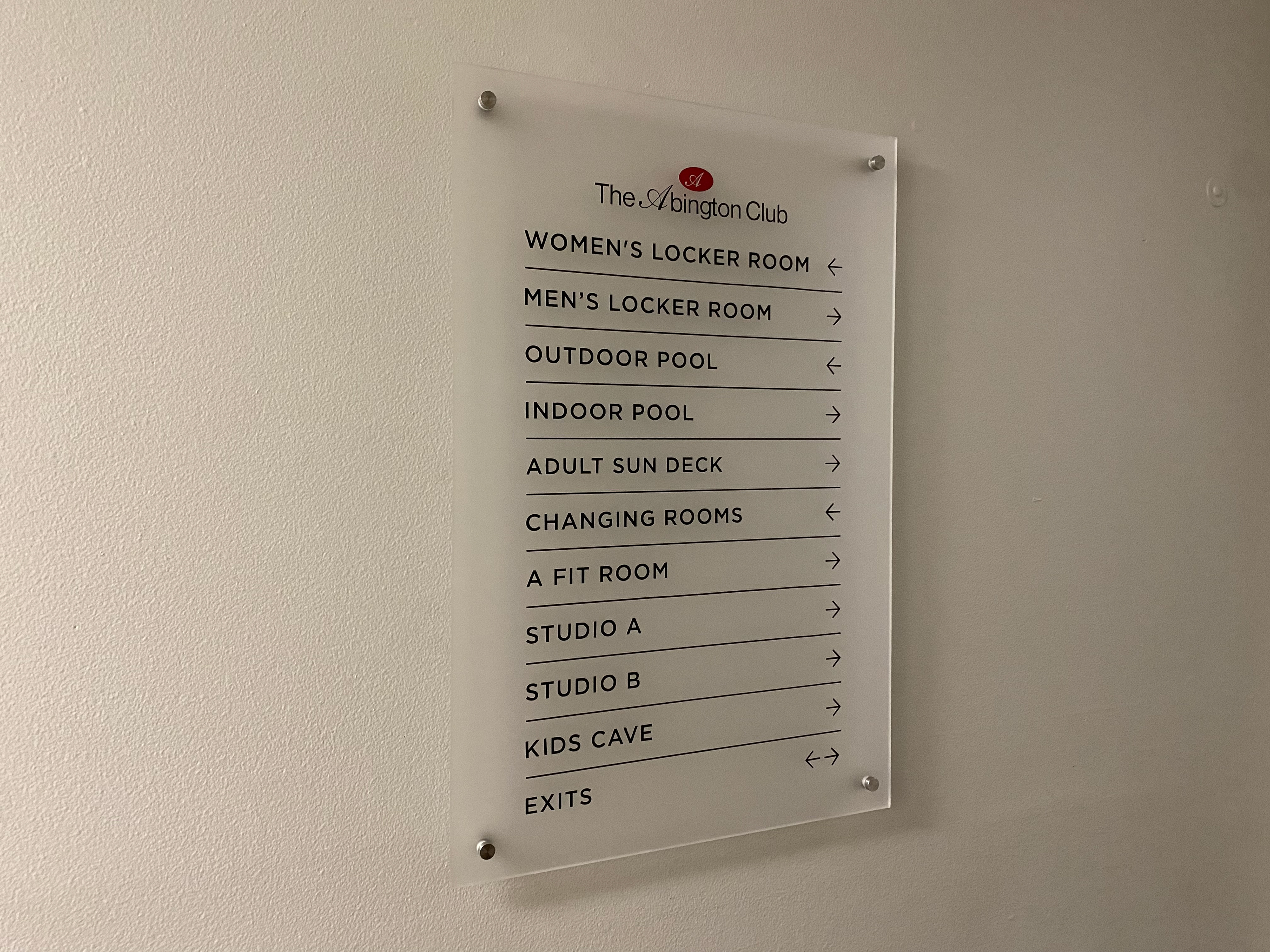Fitness Studio Corridor Signage. Vinyl lettering on acrylic.